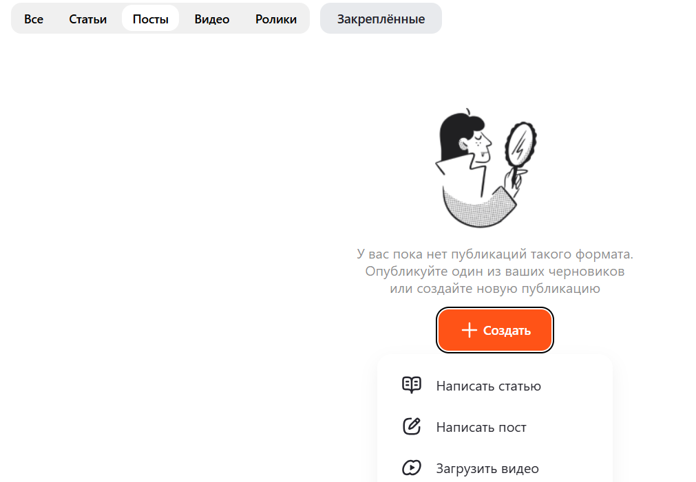 - Разные форматы: В одном канале можно публиковать длинные статьи, короткие посты и вертикальные видео (роллы).