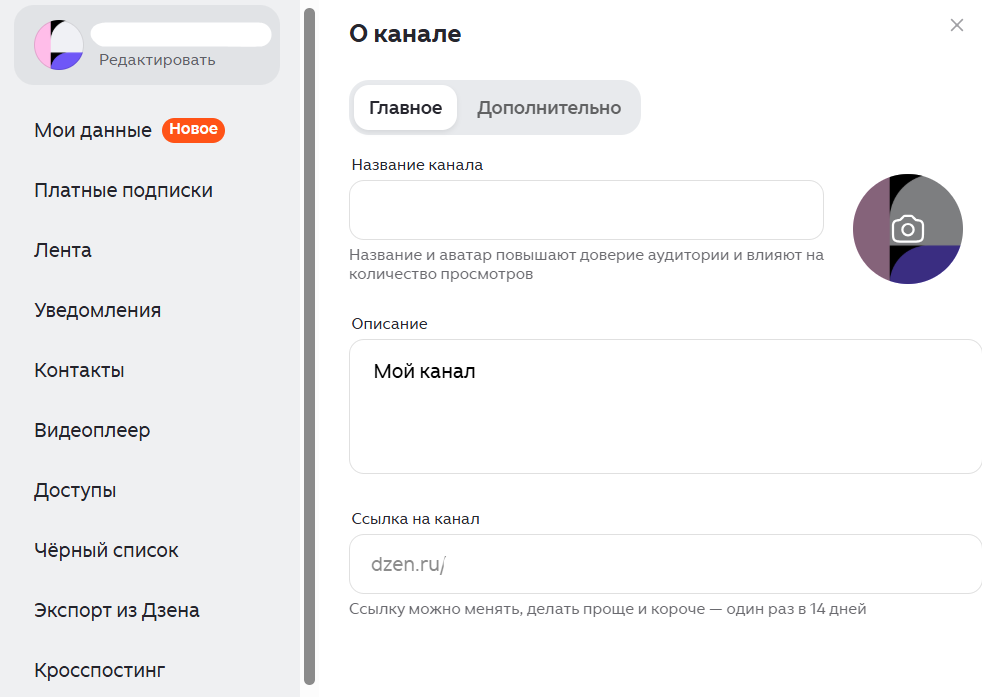 - Загрузите аватарку (четкую и яркую), придумайте название и описание.
