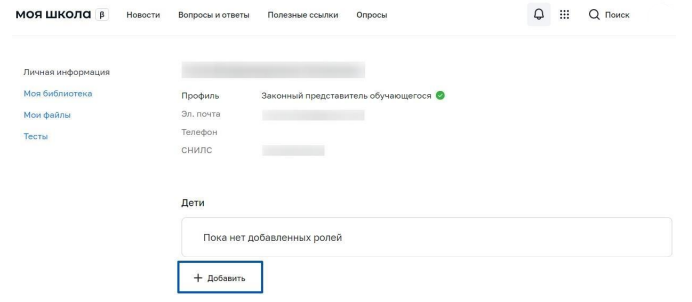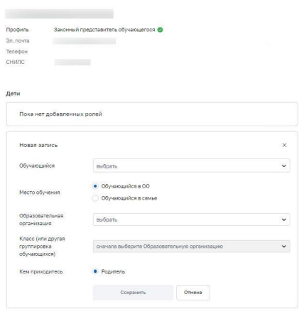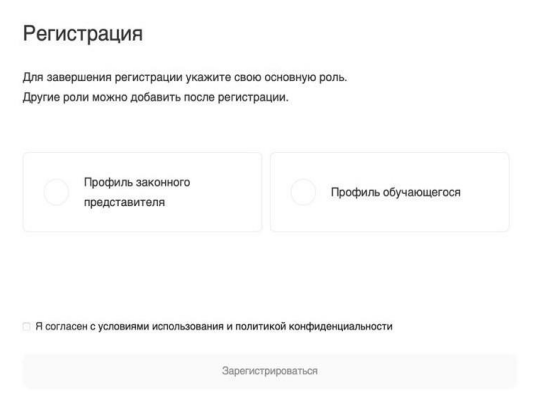 - Выберите роль «Профиль обучающегося».