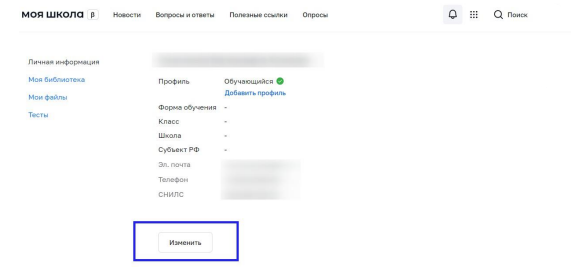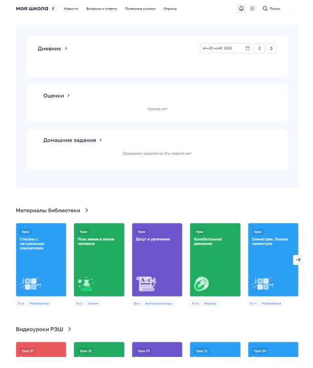 После завершения регистрации произойдёт авторизация в системе и переход на главную страницу ФГИС «Моя Школа»