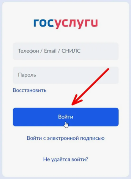 - Авторизуйтесь на портале gosuslugi.ru, используя свой логин (телефон, email или СНИЛС) и пароль.