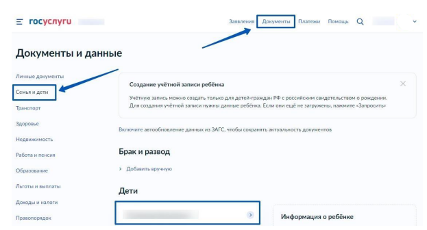 Если в разделе «Семья и дети» на портале Госуслуг информация о ребёнке отсутствует, вам необходимо предпринять следующие шаги: