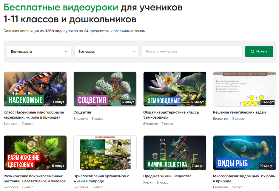 Для учеников: Ученики получают бесплатный доступ к образовательному контенту. Для доступа к материалам им следует войти в свой профиль и перейти в раздел «Видеоуроки». Там, используя фильтры, можно выбрать необходимый предмет, класс и конкретную тему урока.