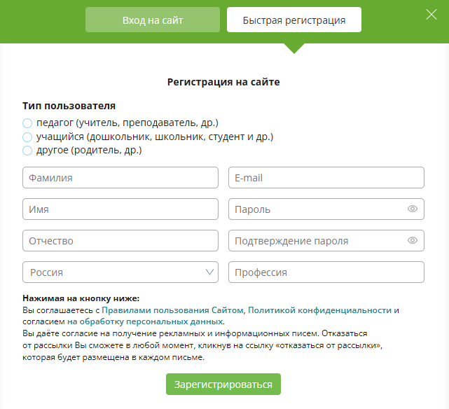 Если вы новый пользователь, вам необходимо пройти регистрацию. Инфоурок предлагает разные пути регистрации в зависимости от вашей роли в образовательном процессе.